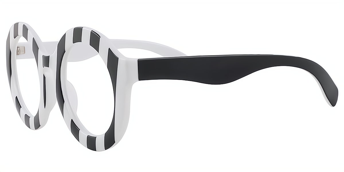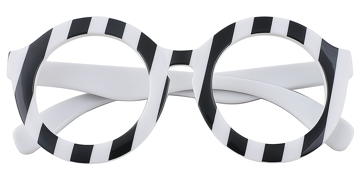Be famous like a celebrity with this perfectly rounded shape Jodie! Its wider frame and timeless design give this pair of eyeglasses a vintage look. Crafted from high-quality plastic and featuring sleek surfaces for all-day wearing comfort. The black and white stripes on the frame are perfect for achieving a bold retro look. This stylish frame is excellent for heart, oval, square-shaped faces. So, Rock your bold look by adding bifocal and progressive lenses to it. This pair comes with the case and cleaning cloth for easy storage and protection.
